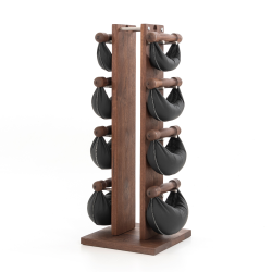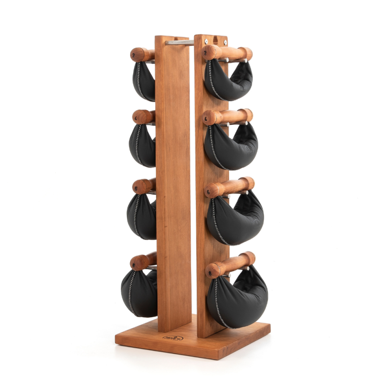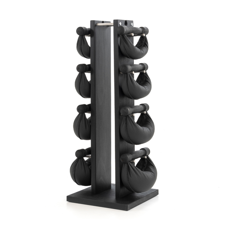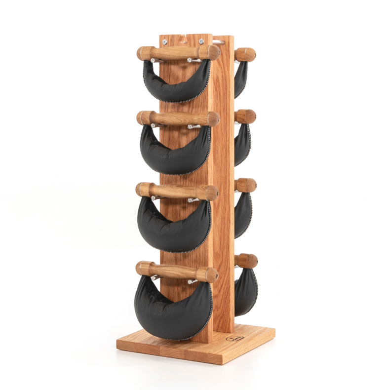 NOHRD SwingTower er et komplet sæt bestående af otte SwingBells (sæt á 2, 4, 6 og 8 kg) samt et et fritstående tårn til pladsbesparende og elegant opbevaring af dine håndvægte.