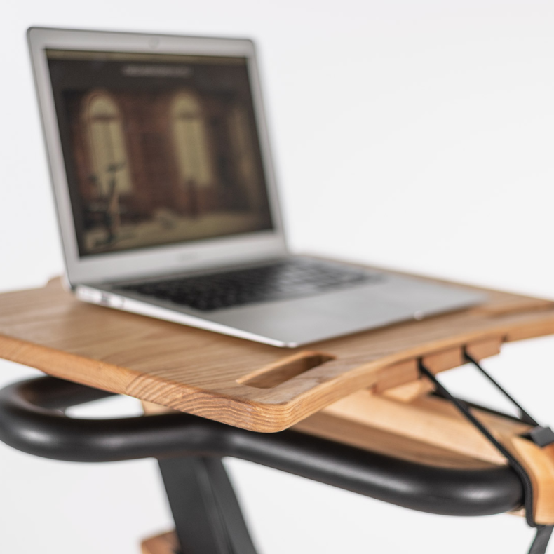 NOHrD Bike skrivebord er den perfekte arbejdsstation - uanset om du ønsker at kombinere kontorarbejde eller din yndlingsserie på computeren med fysisk aktvitet. Den elegante skrivebordsplade kan nemt og ukompliceret monteres med en strop.