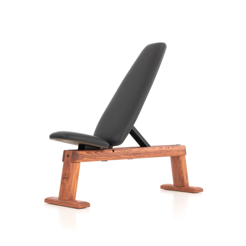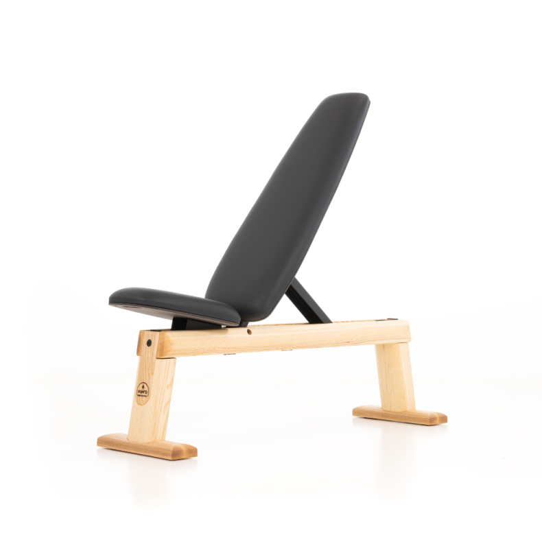 WeightBench-stellet er bygget i massive træsorter fra certificeret bæredygtigt træ. Den robuste træramme udmærker sig ved sin stabilitet, glatte silhuet og smukke træårer. -